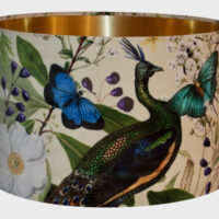 DetailsOut of stock Luxe Ivory Velvet Peacock Lampshade with Metallic Lining and Fringing £60.00 – £95.00